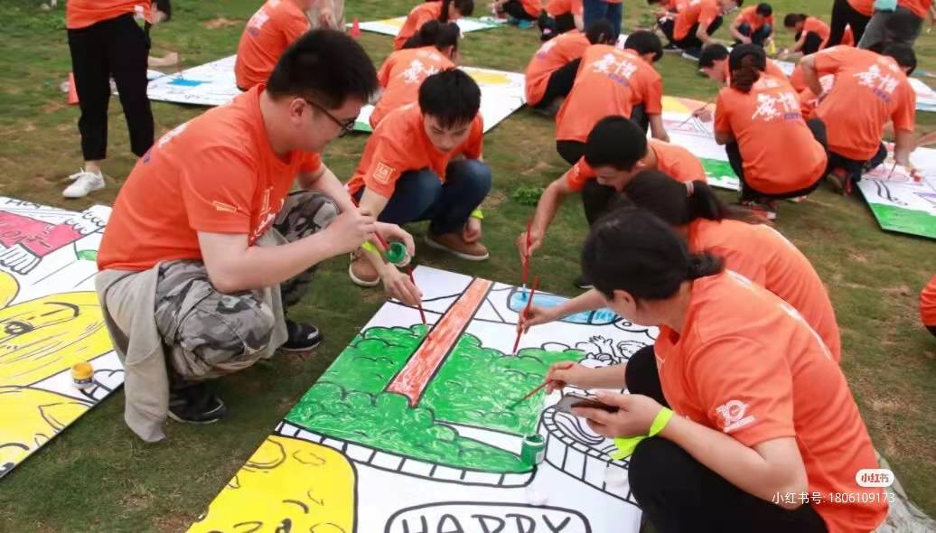 團(tuán)隊成員分為若干大組,每大組再分為設(shè)計組、繪畫??組、后勤組,3個職能小組,每小組通過一系列活動會獲得不同類型的道具,通過對各小樣圖重新設(shè)計和放大,完成一幅具有企業(yè)文化的,賦特殊意義的巨型圖畫。